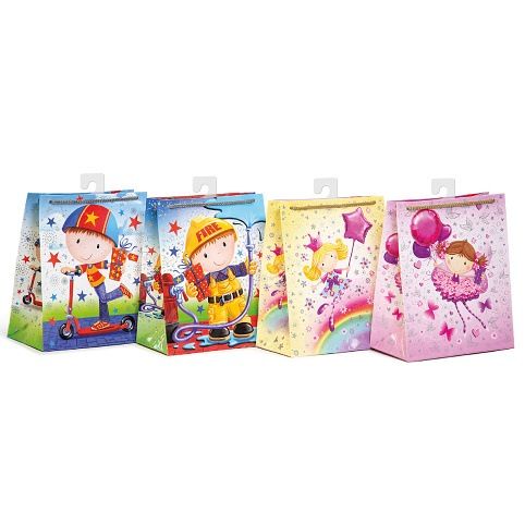Papírová dárková taška s originálním designem a háčkem na zavěšení do stojanu. Vyrobená z kvalitního pevného papíru pro rychlé a praktické zabalení dárků všech velikostí. Kvalita zpracování zaručuje dostatečnou pevnost proti protržení dna nebo odtržení oušek.