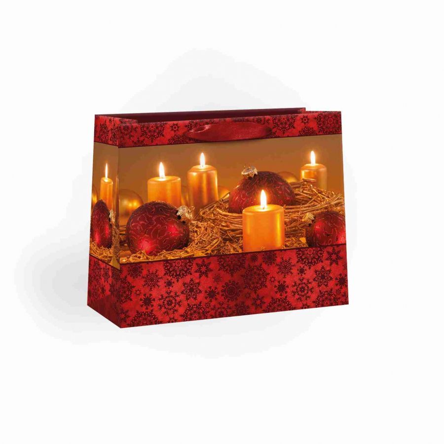 Lesklá vánoční papírová dárková taška s originálním designem. Vyrobená z kvalitního pevného papíru pro rychlé a praktické zabalení dárků všech velikostí. Kvalita zpracování zaručuje dostatečnou pevnost proti protržení dna nebo odtržení oušek.