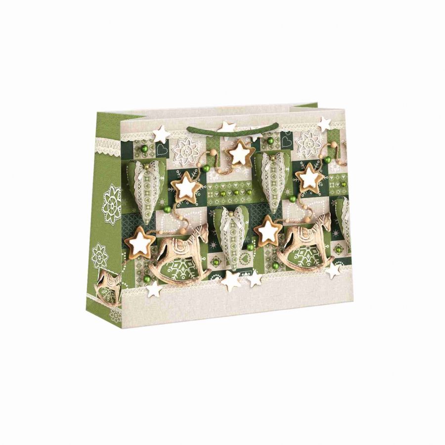 Vánoční papírová dárková taška s originálním designem. Vyrobená z kvalitního pevného papíru pro rychlé a praktické zabalení dárků všech velikostí. Kvalita zpracování zaručuje dostatečnou pevnost proti protržení dna nebo odtržení oušek.