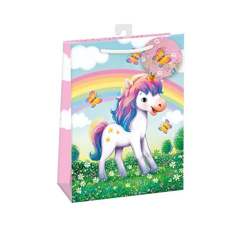 Lesklá papírová dárková taška s háčkem a originálním designem. * vyrobená z kvalitního pevného papíru pro rychlé a praktické zabalení dárků všech velikostí* kvalita zpracování zaručuje dostatečnou pevnost proti protržení dna nebo odtržení oušek* háček slouží k umístění do stojanů v prodejnách, po zakoupení jej lze jednoduše odstřihnout