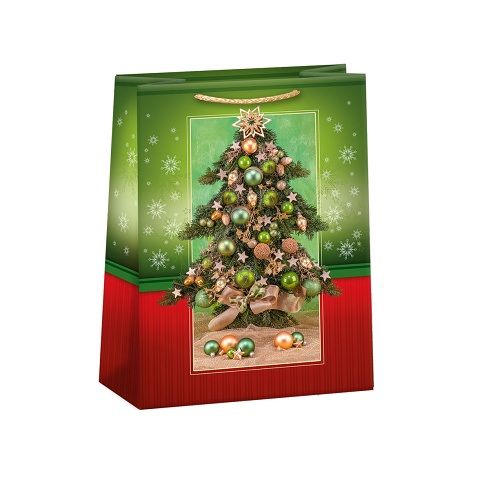 Lesklá vánoční papírová dárková taška s originálním designem. Vyrobená z kvalitního pevného papíru pro rychlé a praktické zabalení dárků všech velikostí. Kvalita zpracování zaručuje dostatečnou pevnost proti protržení dna nebo odtržení oušek.