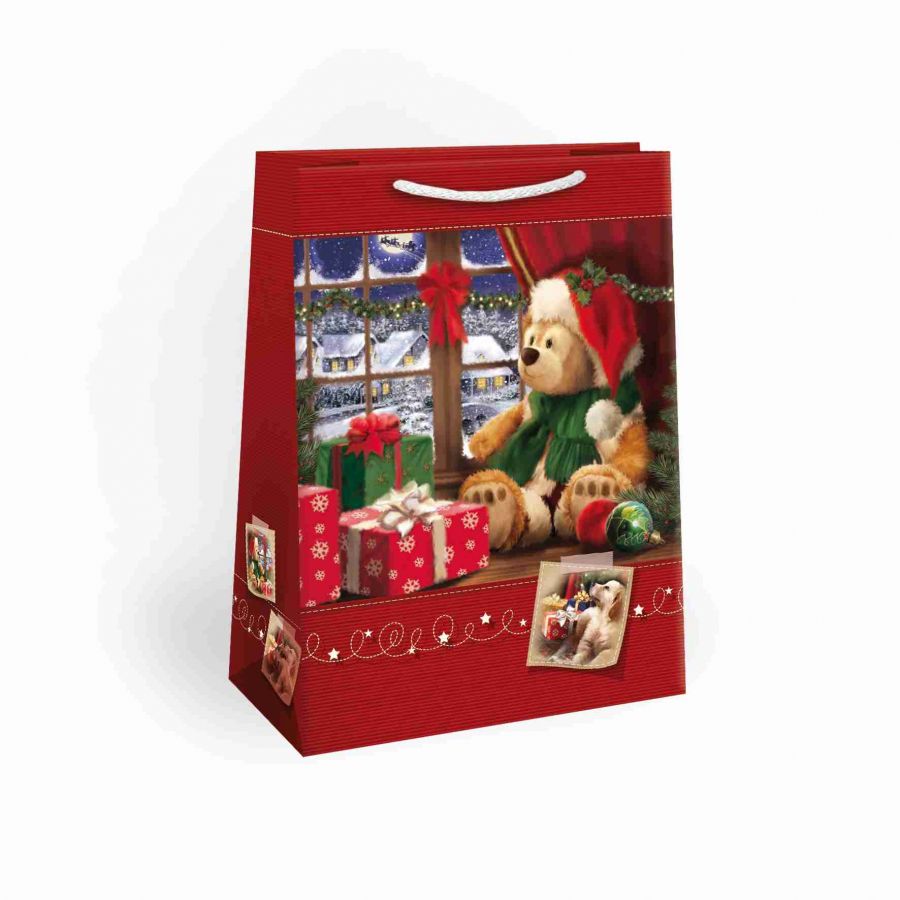 Vánoční papírová dárková taška s originálním designem. Vyrobená z kvalitního pevného papíru pro rychlé a praktické zabalení dárků všech velikostí. Kvalita zpracování zaručuje dostatečnou pevnost proti protržení dna nebo odtržení oušek.