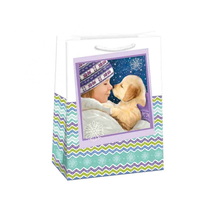 Vánoční papírová dárková taška s originálním designem. Vyrobená z kvalitního pevného papíru pro rychlé a praktické zabalení dárků všech velikostí. Kvalita zpracování zaručuje dostatečnou pevnost proti protržení dna nebo odtržení oušek.