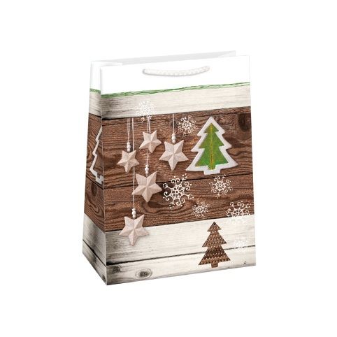 Vánoční papírová dárková taška s originálním designem. Vyrobená z kvalitního pevného papíru pro rychlé a praktické zabalení dárků všech velikostí. Kvalita zpracování zaručuje dostatečnou pevnost proti protržení dna nebo odtržení oušek.
