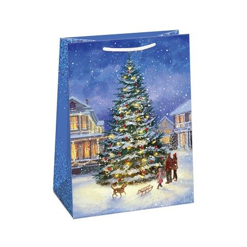 Lesklá vánoční papírová dárková taška s originálním designem. Vyrobená z kvalitního pevného papíru pro rychlé a praktické zabalení dárků všech velikostí. Kvalita zpracování zaručuje dostatečnou pevnost proti protržení dna nebo odtržení oušek.