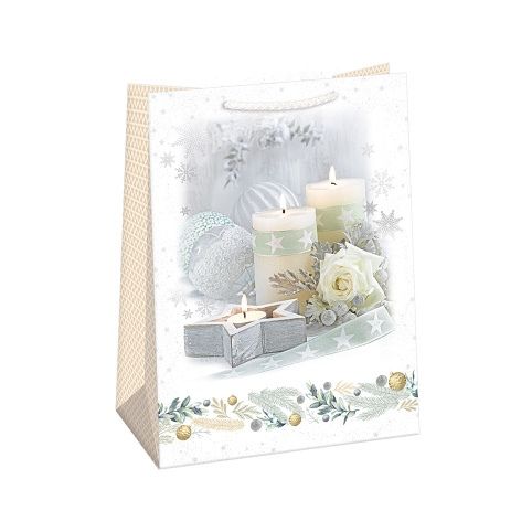 Lesklá vánoční papírová dárková taška s originálním designem. Vyrobená z kvalitního pevného papíru pro rychlé a praktické zabalení dárků všech velikostí. Kvalita zpracování zaručuje dostatečnou pevnost proti protržení dna nebo odtržení oušek. Na tašce je průsvitné plastové ouško, které slouží k uchycení tašky na prodejním stojanu. Po zakoupení je možné ho jednoduše odstřihnout.