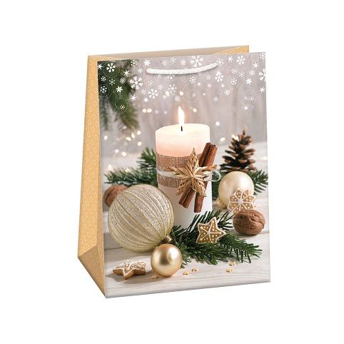 Lesklá vánoční papírová dárková taška s originálním designem. Vyrobená z kvalitního pevného papíru pro rychlé a praktické zabalení dárků všech velikostí. Kvalita zpracování zaručuje dostatečnou pevnost proti protržení dna nebo odtržení oušek.