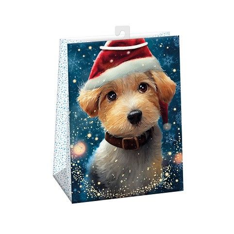 Vánoční papírová dárková taška s originálním designem. Vyrobená z kvalitního pevného papíru pro rychlé a praktické zabalení dárků všech velikostí. Kvalita zpracování zaručuje dostatečnou pevnost proti protržení dna nebo odtržení oušek. Na tašce je průsvitné plastové ouško, které slouží k uchycení tašky na prodejním stojanu. Po zakoupení je možné ho jednoduše odstřihnout.
