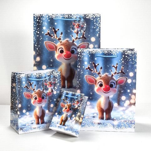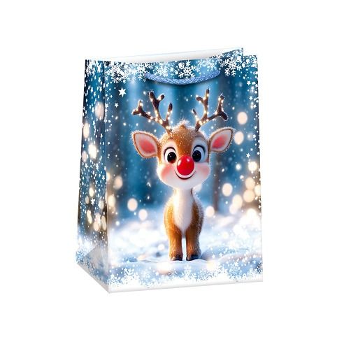 Vánoční papírová dárková taška s originálním designem. * vyrobená z kvalitního pevného papíru pro rychlé a praktické zabalení dárků všech velikostí* kvalita zpracování zaručuje dostatečnou pevnost proti protržení dna nebo odtržení oušek
