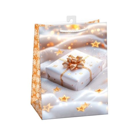 Lesklá vánoční papírová dárková taška s originálním designem. * vyrobená z kvalitního pevného papíru pro rychlé a praktické zabalení dárků všech velikostí* kvalita zpracování zaručuje dostatečnou pevnost proti protržení dna nebo odtržení oušek* na tašce je průsvitné plastové ouško, které slouží k uchycení tašky na prodejním stojanu. Po zakoupení je možné ho jednoduše odstřihnout
