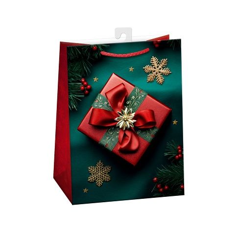 Lesklá vánoční papírová dárková taška s originálním designem. * vyrobená z kvalitního pevného papíru pro rychlé a praktické zabalení dárků všech velikostí* kvalita zpracování zaručuje dostatečnou pevnost proti protržení dna nebo odtržení oušek* na tašce je průsvitné plastové ouško, které slouží k uchycení tašky na prodejním stojanu. Po zakoupení je možné ho jednoduše odstřihnout