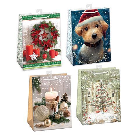 Vánoční papírová dárková taška s originálním designem. Vyrobená z kvalitního pevného papíru pro rychlé a praktické zabalení dárků všech velikostí. Kvalita zpracování zaručuje dostatečnou pevnost proti protržení dna nebo odtržení oušek. Na tašce je průsvitné plastové ouško, které slouží k uchycení tašky na prodejním stojanu. Po zakoupení je možné ho jednoduše odstřihnout.