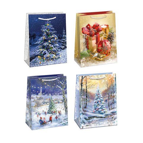 Vánoční papírová dárková taška s originálním designem. * vyrobená z kvalitního pevného papíru pro rychlé a praktické zabalení dárků* kvalita zpracování zaručuje dostatečnou pevnost proti protržení dna nebo odtržení oušek