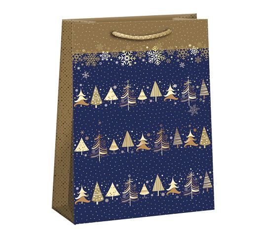Luxusní vánoční papírová dárková taška s originálním designem. Vyrobená z kvalitního pevného papíru pro rychlé a praktické zabalení dárků všech velikostí. Kvalita zpracování zaručuje dostatečnou pevnost proti protržení dna nebo odtržení oušek.