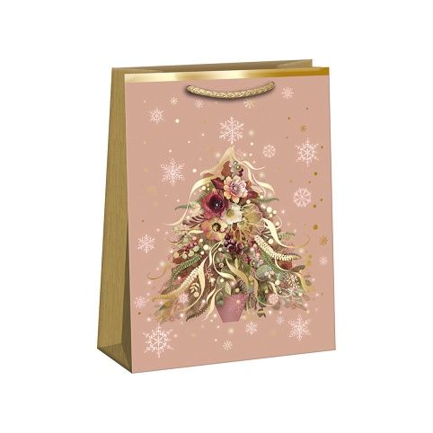 Luxusní vánoční papírová dárková taška s originálním designem. Vyrobená z kvalitního pevného papíru pro rychlé a praktické zabalení dárků všech velikostí. Kvalita zpracování zaručuje dostatečnou pevnost proti protržení dna nebo odtržení oušek.