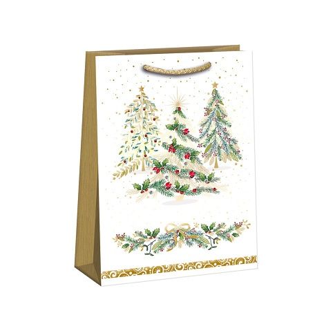 Luxusní vánoční papírová dárková taška s originálním designem. Vyrobená z kvalitního pevného papíru pro rychlé a praktické zabalení dárků všech velikostí. Kvalita zpracování zaručuje dostatečnou pevnost proti protržení dna nebo odtržení oušek.