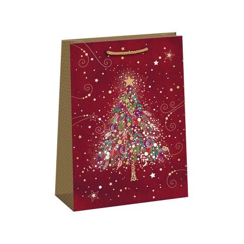 Luxusní vánoční papírová dárková taška s originálním designem. Vyrobená z kvalitního pevného papíru pro rychlé a praktické zabalení dárků všech velikostí. Kvalita zpracování zaručuje dostatečnou pevnost proti protržení dna nebo odtržení oušek.
