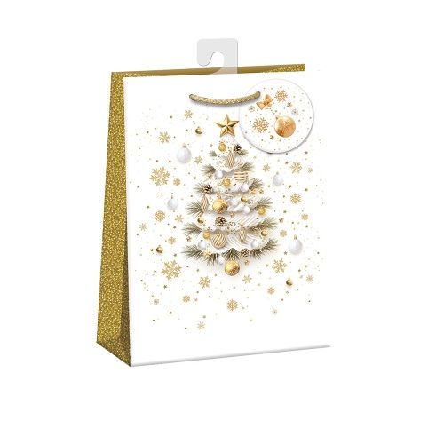 Luxusní vánoční papírová dárková taška LUX s originálním designem na víno nebo šampaňské.* pro rychlé a praktické zabalení* kvalita zpracování zaručuje dostatečnou pevnost proti protržení dna nebo odtržení oušek* na tašce je průsvitné ouško, které slouží k uchchycení tašky na prodejnom stojanu. Po zakoupení je možné ho jednoduše odstřihnout