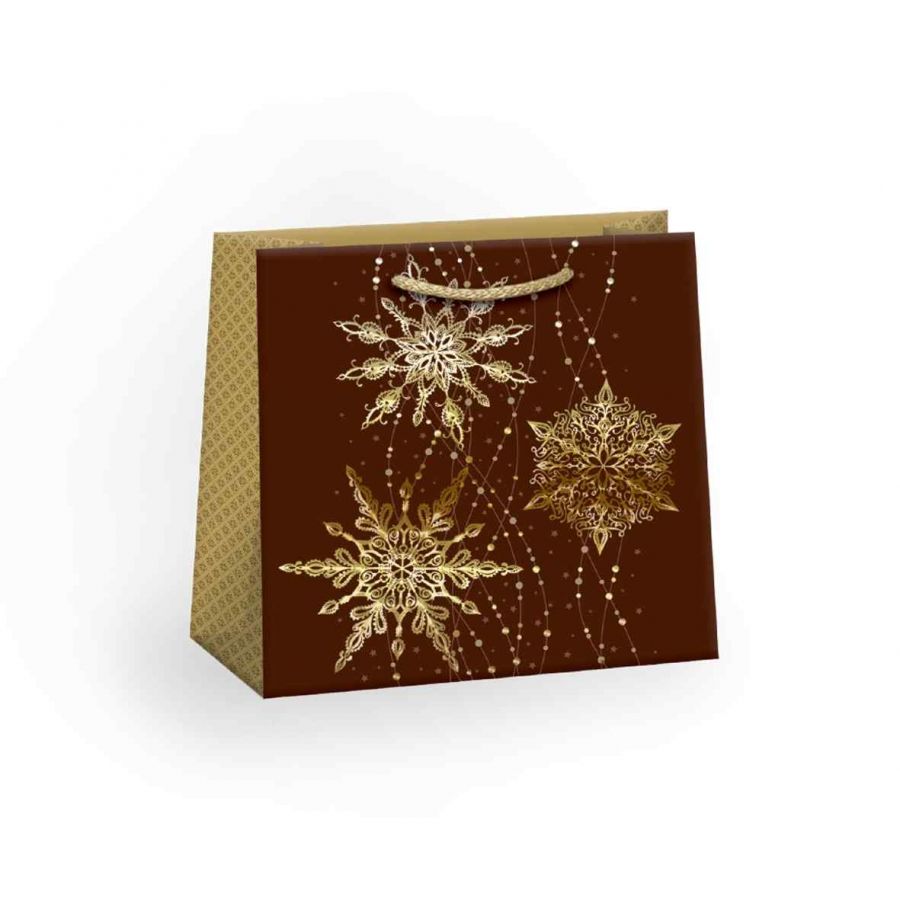 Luxusní vánoční papírová dárková taška s originálním designem. Vyrobená z kvalitního pevného papíru pro rychlé a praktické zabalení dárků všech velikostí. Kvalita zpracování zaručuje dostatečnou pevnost proti protržení dna nebo odtržení oušek.