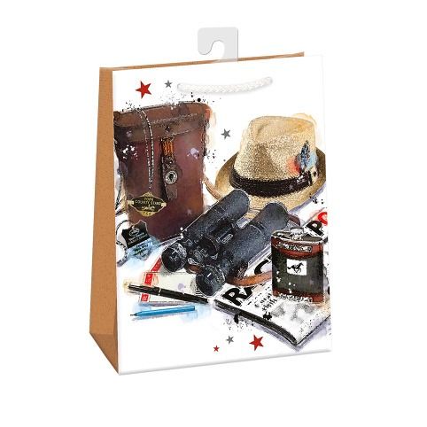 Papírová dárková taška standard s háčkem a originálním designem. Vyrobená z kvalitního pevného papíru pro rychlé a praktické zabalení dárků všech velikostí. Kvalita zpracování zaručuje dostatečnou pevnost proti protržení dna nebo odtržení oušek. Háček slouží k umístění do stojanů v prodejnách. Po zakoupení jej lze jednoduše odstřihnout.