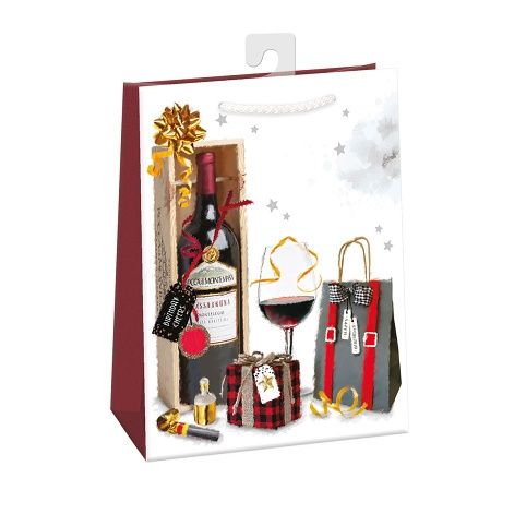 Papírová dárková taška standard s háčkem a originálním designem. Vyrobená z kvalitního pevného papíru pro rychlé a praktické zabalení dárků všech velikostí. Kvalita zpracování zaručuje dostatečnou pevnost proti protržení dna nebo odtržení oušek. Háček slouží k umístění do stojanů v prodejnách. Po zakoupení jej lze jednoduše odstřihnout.