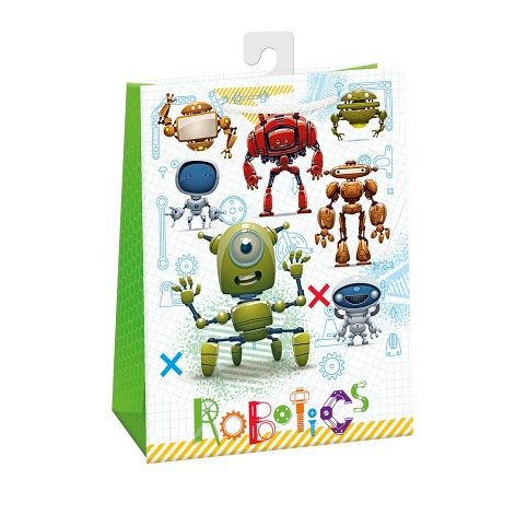 Papírová dárková taška standard s háčkem a originálním designem. Vyrobená z kvalitního pevného papíru pro rychlé a praktické zabalení dárků všech velikostí. Kvalita zpracování zaručuje dostatečnou pevnost proti protržení dna nebo odtržení oušek. Háček slouží k umístění do stojanů v prodejnách. Po zakoupení jej lze jednoduše odstřihnout.