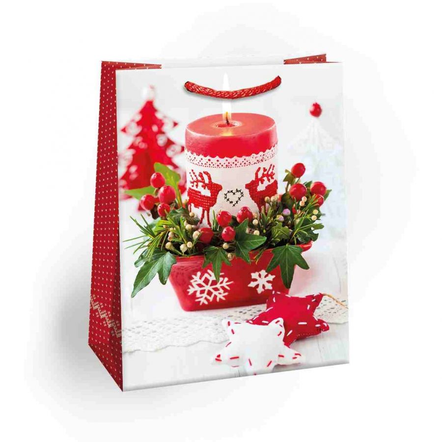 Vánoční papírová dárková taška s originálním designem. Vyrobená z kvalitního pevného papíru pro rychlé a praktické zabalení dárků všech velikostí. Kvalita zpracování zaručuje dostatečnou pevnost proti protržení dna nebo odtržení oušek.