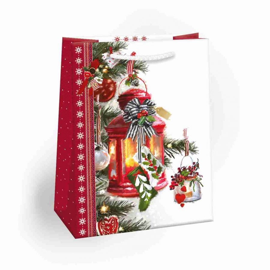 Vánoční papírová dárková taška s originálním designem. Vyrobená z kvalitního pevného papíru pro rychlé a praktické zabalení dárků všech velikostí. Kvalita zpracování zaručuje dostatečnou pevnost proti protržení dna nebo odtržení oušek.