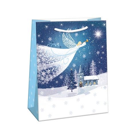 Vánoční papírová dárková taška s originálním designem. Vyrobená z kvalitního pevného papíru pro rychlé a praktické zabalení dárků všech velikostí. Kvalita zpracování zaručuje dostatečnou pevnost proti protržení dna nebo odtržení oušek. Na tašce je průsvitné plastové ouško, které slouží k uchycení tašky na prodejním stojanu. Po zakoupení je možné ho jednoduše odstřihnout.