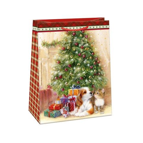 Vánoční papírová dárková taška s originálním designem. Vyrobená z kvalitního pevného papíru pro rychlé a praktické zabalení dárků všech velikostí. Kvalita zpracování zaručuje dostatečnou pevnost proti protržení dna nebo odtržení oušek.