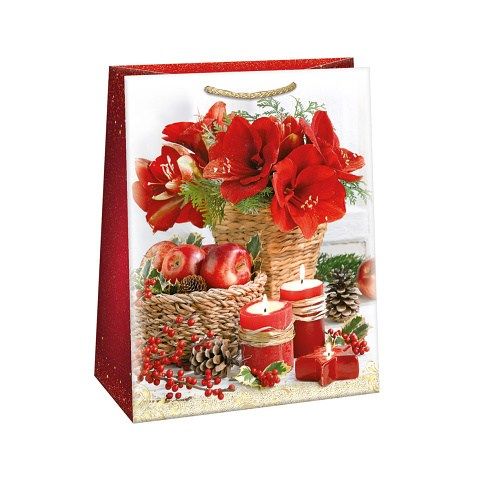 Lesklá vánoční papírová dárková taška s originálním designem. Vyrobená z kvalitního pevného papíru pro rychlé a praktické zabalení dárků všech velikostí. Kvalita zpracování zaručuje dostatečnou pevnost proti protržení dna nebo odtržení oušek. Na tašce je průsvitné plastové ouško, které slouží k uchycení tašky na prodejním stojanu. Po zakoupení je možné ho jednoduše odstřihnout.