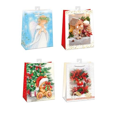 Vánoční papírová dárková taška s originálním designem. * vyrobená z kvalitního pevného papíru pro rychlé a praktické zabalení dárků všech velikostí* kvalita zpracování zaručuje dostatečnou pevnost proti protržení dna nebo odtržení oušek* na tašce je průsvitné plastové ouško, které slouží k uchycení tašky na prodejním stojanu. Po zakoupení je možné ho jednoduše odstřihnout*