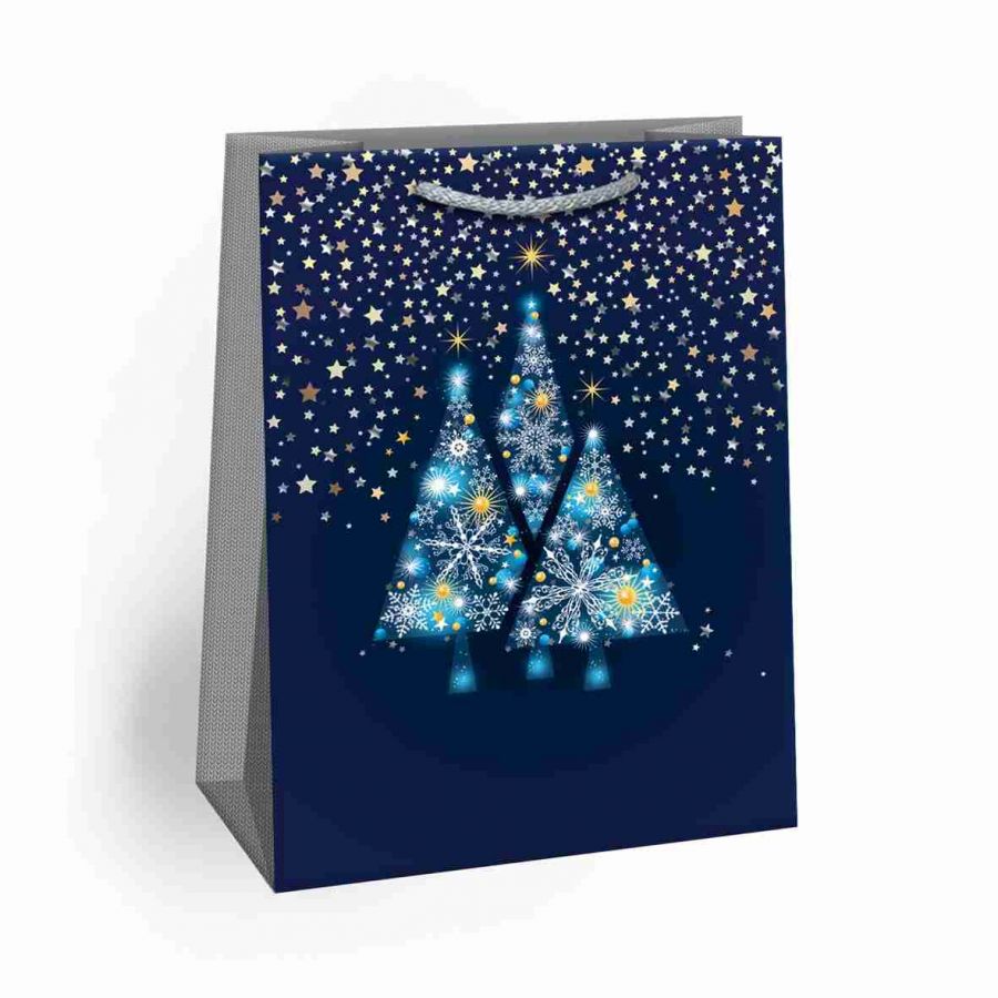 Luxusní vánoční papírová dárková taška s originálním designem. Vyrobená z kvalitního pevného papíru pro rychlé a praktické zabalení dárků všech velikostí. Kvalita zpracování zaručuje dostatečnou pevnost proti protržení dna nebo odtržení oušek.