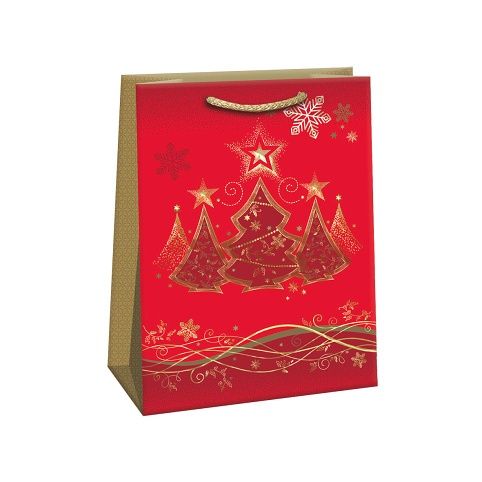 Luxusní vánoční papírová dárková taška s originálním designem. Vyrobená z kvalitního pevného papíru pro rychlé a praktické zabalení dárků všech velikostí. Kvalita zpracování zaručuje dostatečnou pevnost proti protržení dna nebo odtržení oušek.