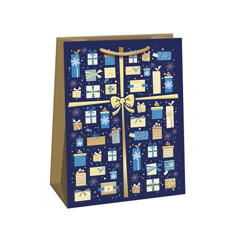 Luxusní vánoční papírová dárková taška s originálním designem. Vyrobená z kvalitního pevného papíru pro rychlé a praktické zabalení dárků všech velikostí. Kvalita zpracování zaručuje dostatečnou pevnost proti protržení dna nebo odtržení oušek.
