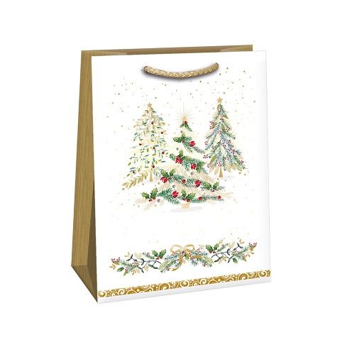 Luxusní vánoční papírová dárková taška s originálním designem. Vyrobená z kvalitního pevného papíru pro rychlé a praktické zabalení dárků všech velikostí. Kvalita zpracování zaručuje dostatečnou pevnost proti protržení dna nebo odtržení oušek.