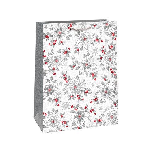 Luxusní vánoční papírová dárková taška s originálním designem. Vyrobená z kvalitního pevného papíru pro rychlé a praktické zabalení dárků všech velikostí. Kvalita zpracování zaručuje dostatečnou pevnost proti protržení dna nebo odtržení oušek.