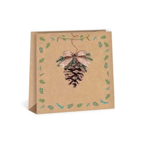 Vánoční přírodní dárková taška ve tvaru čtverce s jednoduchým, výrazným potiskem. Vyrobená z kvalitního pevného přírodního papíru pro rychlé a praktické zabalení dárků všech velikostí. Kvalita zpracování zaručuje dostatečnou pevnost proti protržení dna nebo odtržení oušek. Přírodní kraftový papír využíváme při několika našich výrobcích označených jako ECO FRIENDLY. ARGUS - Máme rádi přírodu!