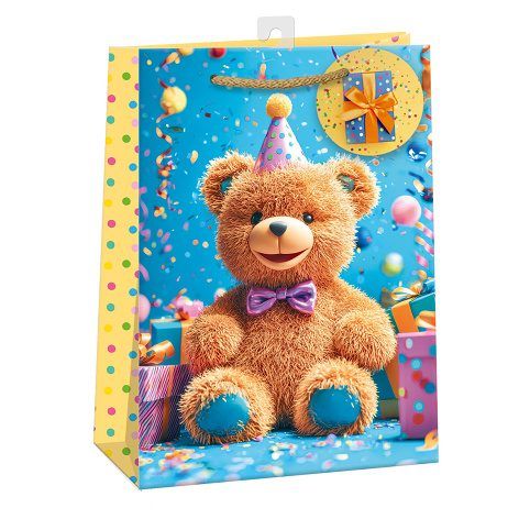 Lesklá papírová dárková taška s háčkem a originálním designem. * vyrobená z kvalitního pevného papíru pro rychlé a praktické zabalení dárků všech velikostí* kvalita zpracování zaručuje dostatečnou pevnost proti protržení dna nebo odtržení oušek* háček slouží k umístění do stojanů v prodejnách, po zakoupení jej lze jednoduše odstřihnout