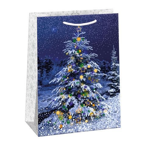 Lesklá vánoční papírová dárková taška s originálním designem. Vyrobená z kvalitního pevného papíru pro rychlé a praktické zabalení dárků všech velikostí. Kvalita zpracování zaručuje dostatečnou pevnost proti protržení dna nebo odtržení oušek.