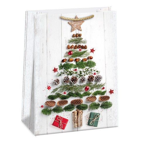 Vánoční papírová dárková taška s originálním designem. Vyrobená z kvalitního pevného papíru pro rychlé a praktické zabalení dárků všech velikostí. Kvalita zpracování zaručuje dostatečnou pevnost proti protržení dna nebo odtržení oušek. Na tašce je průsvitné plastové ouško, které slouží k uchycení tašky na prodejním stojanu. Po zakoupení je možné ho jednoduše odstřihnout.
