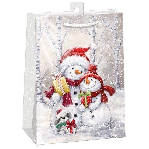 Vánoční papírová dárková taška s originálním designem. Vyrobená z kvalitního pevného papíru pro rychlé a praktické zabalení dárků všech velikostí. Kvalita zpracování zaručuje dostatečnou pevnost proti protržení dna nebo odtržení oušek. Na tašce je průsvitné plastové ouško, které slouží k uchycení tašky na prodejním stojanu. Po zakoupení je možné ho jednoduše odstřihnout.