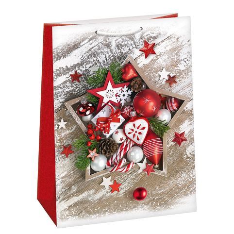 Vánoční papírová dárková taška s originálním designem. Vyrobená z kvalitního pevného papíru pro rychlé a praktické zabalení dárků všech velikostí. Kvalita zpracování zaručuje dostatečnou pevnost proti protržení dna nebo odtržení oušek.