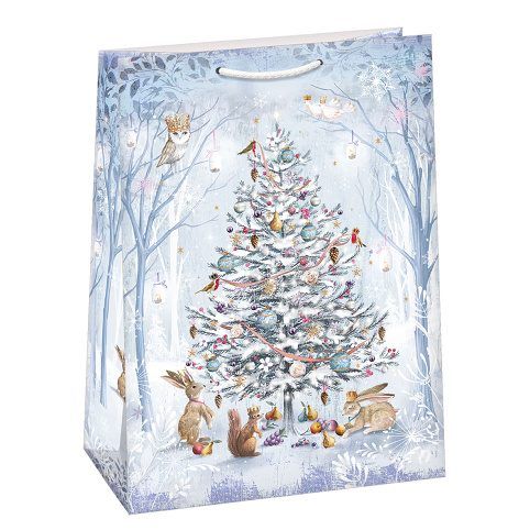Vánoční papírová dárková taška s originálním designem. Vyrobená z kvalitního pevného papíru pro rychlé a praktické zabalení dárků všech velikostí. Kvalita zpracování zaručuje dostatečnou pevnost proti protržení dna nebo odtržení oušek.