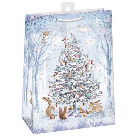 Vánoční papírová dárková taška s originálním designem. Vyrobená z kvalitního pevného papíru pro rychlé a praktické zabalení dárků všech velikostí. Kvalita zpracování zaručuje dostatečnou pevnost proti protržení dna nebo odtržení oušek. Na tašce je průsvitné plastové ouško, které slouží k uchycení tašky na prodejním stojanu. Po zakoupení je možné ho jednoduše odstřihnout.