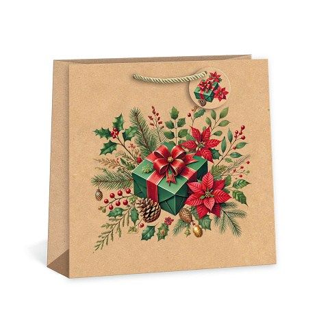 Vánoční přírodní dárková taška ve tvaru čtverce s jednoduchým, výrazným potiskem. * vyrobená z kvalitního pevného přírodního papíru pro rychlé a praktické zabalení dárků všech velikostí* kvalita zpracování zaručuje dostatečnou pevnost proti protržení dna nebo odtržení oušek* přírodní kraftový papír využíváme při několika našich výrobcích označených jako ECO FRIENDLY* ARGUS - Máme rádi přírodu!