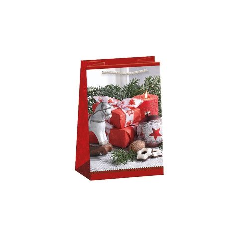 Vánoční papírová dárková taška s originálním designem. Vyrobená z kvalitního pevného papíru pro rychlé a praktické zabalení dárků všech velikostí. Kvalita zpracování zaručuje dostatečnou pevnost proti protržení dna nebo odtržení oušek.