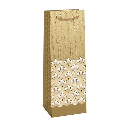 Luxusní papírová dárková taška LUX s originálním designem na víno nebo šampaňské pro rychlé a praktické zabalení. Kvalita zpracování zaručuje dostatečnou pevnost proti protržení dna nebo odtržení oušek.