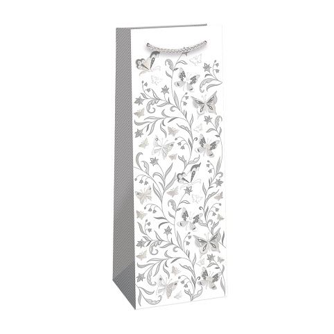 Luxusní papírová dárková taška LUX s originálním designem na víno nebo šampaňské pro rychlé a praktické zabalení. Kvalita zpracování zaručuje dostatečnou pevnost proti protržení dna nebo odtržení oušek.