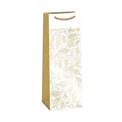 Luxusní papírová dárková taška LUX s originálním designem na víno nebo šampaňské pro rychlé a praktické zabalení. Kvalita zpracování zaručuje dostatečnou pevnost proti protržení dna nebo odtržení oušek.